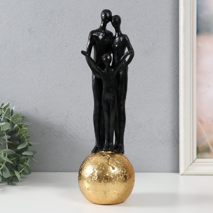Сувенир полистоун "Абстракция. Семья на шаре" золото с чёрным 9,5х9,5х32 см