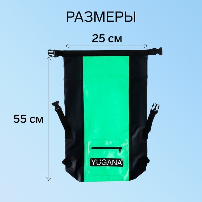 Герморюкзак YUGANA, ПВХ, водонепроницаемый 15 литров, зеленый