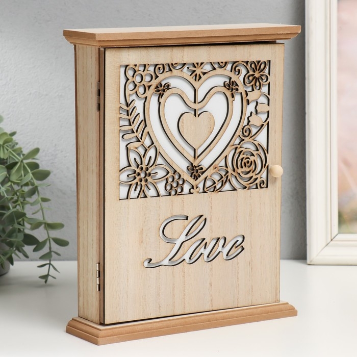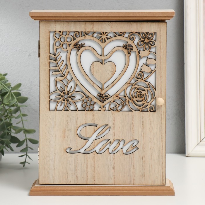 Ключница дерево 6 крючков "Сердце в цветах" 26,5х20,8х6,3 см