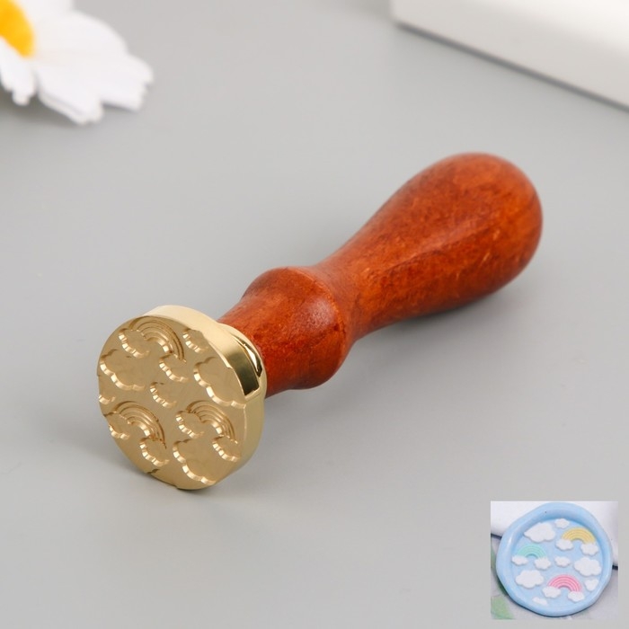 Печать для сургуча с деревянной ручкой "Радуга в облаках" 9х2,5х2,5 см