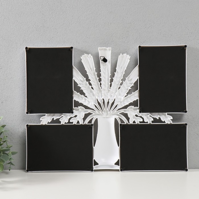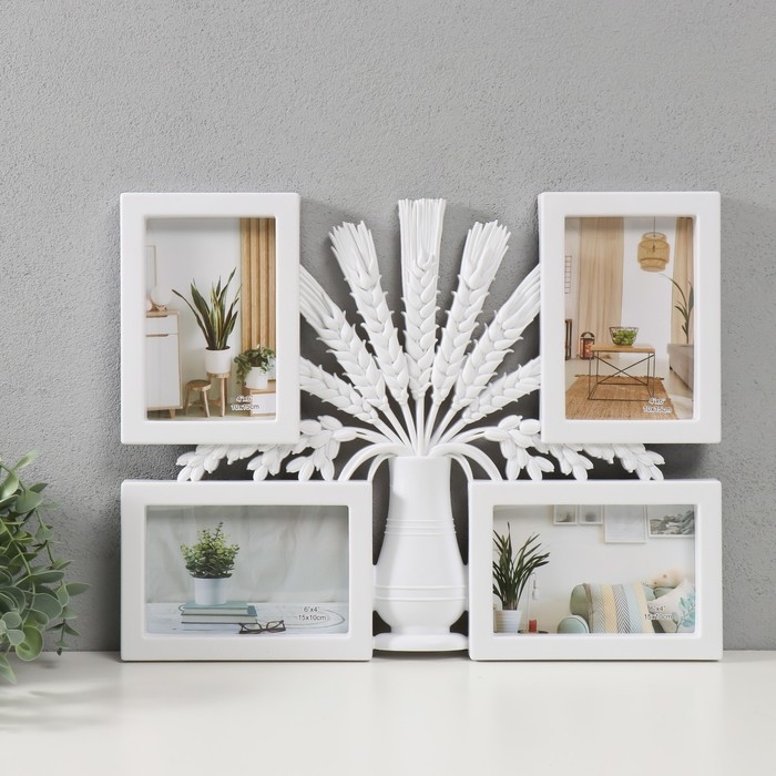 Фоторамка пластик на 4 фото 10х15 "Ваза с колосками" белая 41,5х32,2х2,5 см