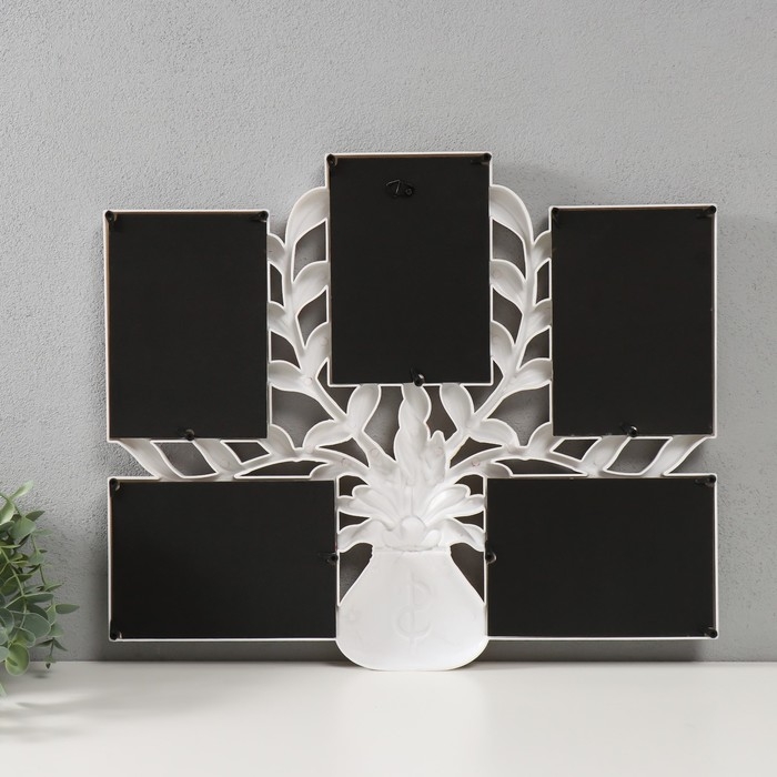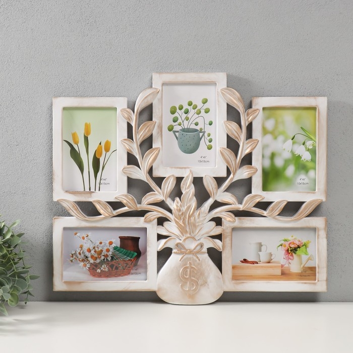 Фоторамка пластик на 5 фото 10х15 "Мешочек денежного дерева" белая с золотом 45х38,5х2,5 см 990904