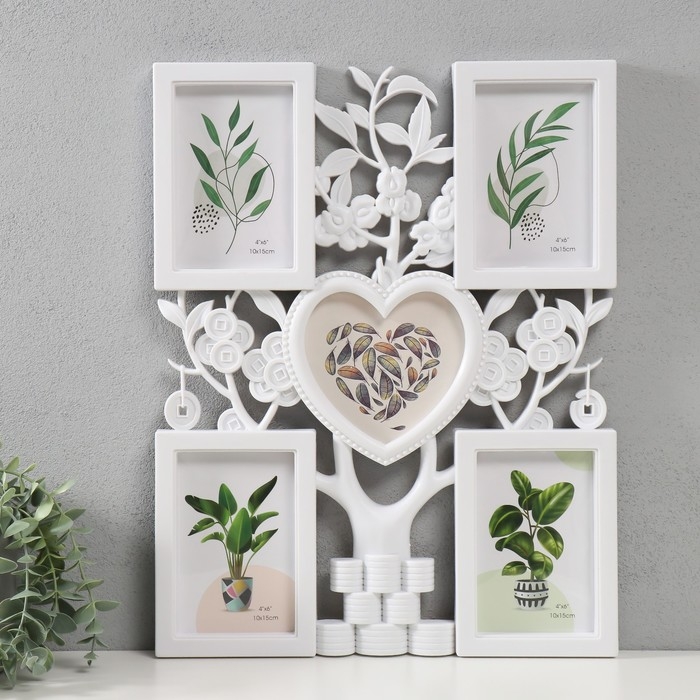 Фоторамка пластик на 5 фото 10х15 13х12 "Денежное дерево" белая 45х35х2,5 см