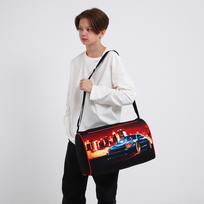 Сумка детская спортивная для мальчика «Крутая тачка», 40х24х21, отд на молнии, чёрный