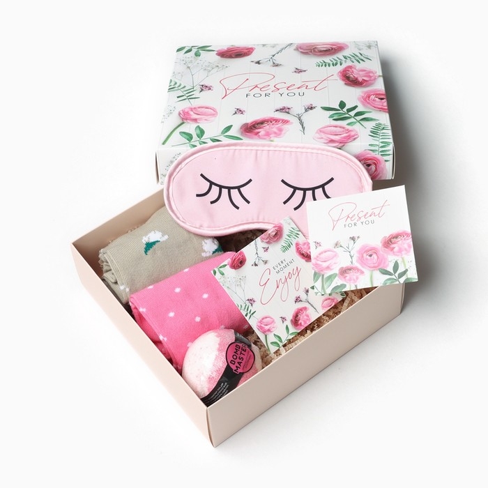 Подарочный набор KAFTAN Present, носки размер 36-39 (23-25 см), бомбочка для ванн, маска для сна