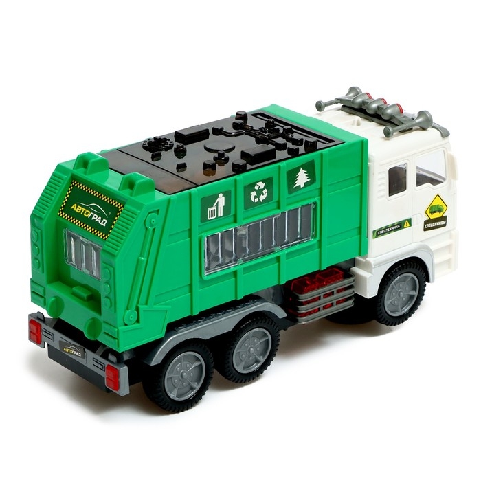 Машина «Мусоровоз» поможет малышу почувствовать себя настоящим водителем спецтехники. Это грузовой автомобиль предназначен для загрузки, уплотнения, транспортировки и выгрузки мусора. С «Мусоровозом» можно играть дома и брать его с собой на прогулку. Ребёнок сможет не только увлекательно провести время за игрой, но также придумать новые сюжеты, развить свою фантазию и воображение. А яркий дизайн и проработанные детали сделают игру динамичнее и интереснее.