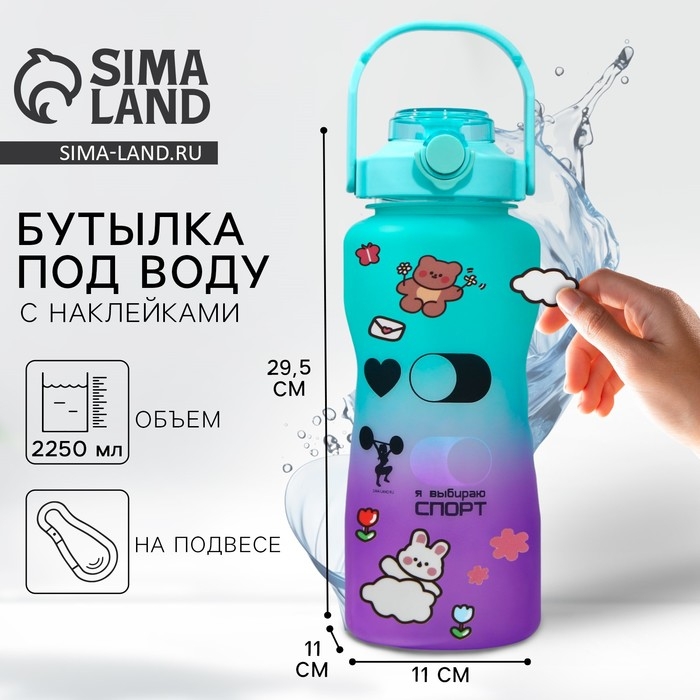Бутылка для воды с наклейками «Спорт», 2,25 л
