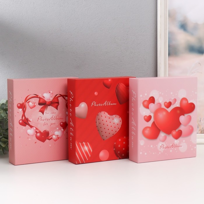 Фотоальбом на 80 фото 10х15 см "3D сердца" в коробке МИКС 5х19х23 см