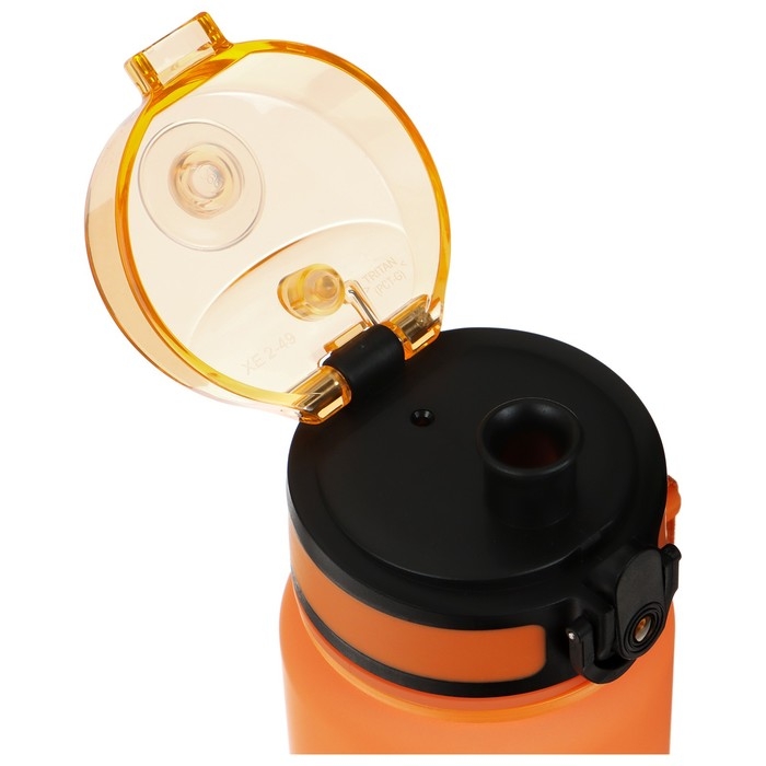 Бутылка изготовлена из экологичного материала — тритана. Он не выделяет и не впитывает запахов. Материал обладает высокой прочностью и защищает изделие от протеканий. Крышка выполнена из пластика, имеет силиконовое уплотнение. Инновационная система позволяет открывать бутылку нажатием одной кнопки. Крышка откидывается назад автоматически, имеет фиксатор, который предотвращает случайное открывание.