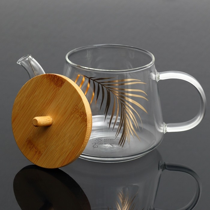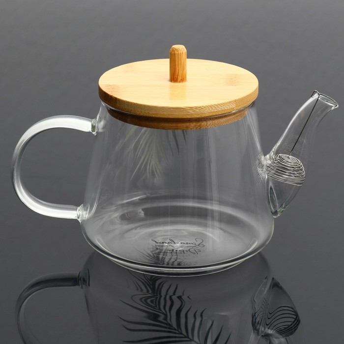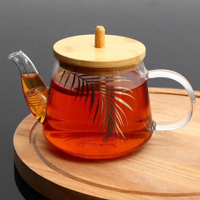 Чайник стеклянный заварочный с бамбуковой крышкой «Тропики», 600 мл