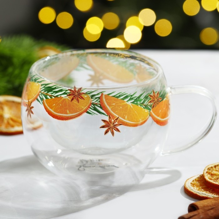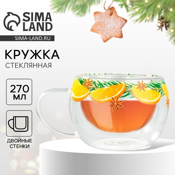 Новый год. Кружка новогодняя стеклянная с двойными стенками «Аромат праздника », 270 мл