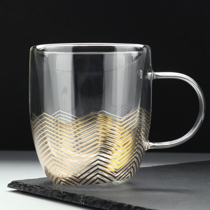 Кружка стеклянная с двойными стенками «Геометрия», 300 мл