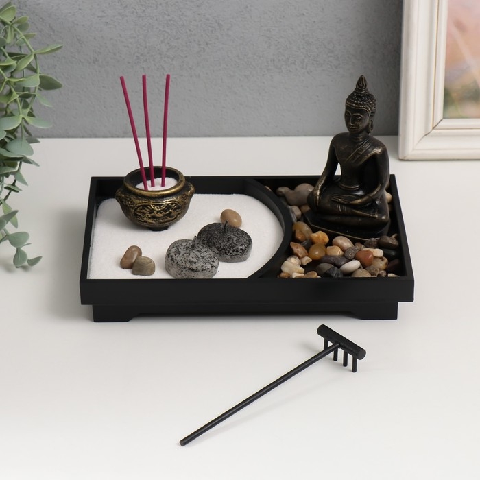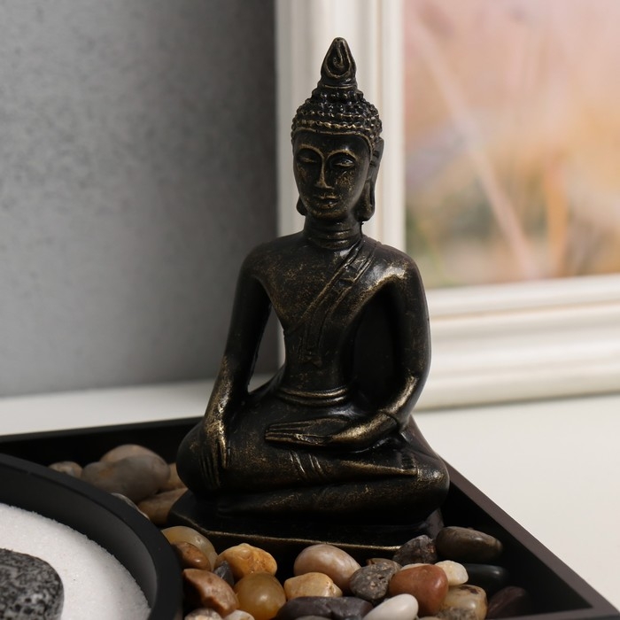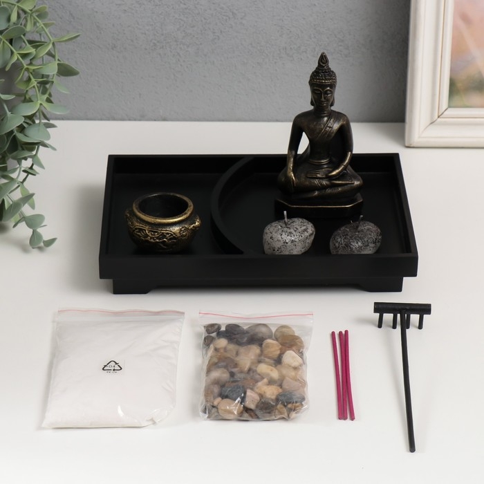 Сад Дзен "Бронзовый Будда" песок+аромапалочки+камни 22х15х12,5 см