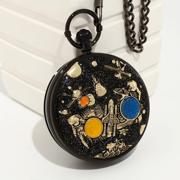 Часы карманные, музыкальные "Космос", кварцевые, d циферблата-5.9 см, цепочка l-36.5 см