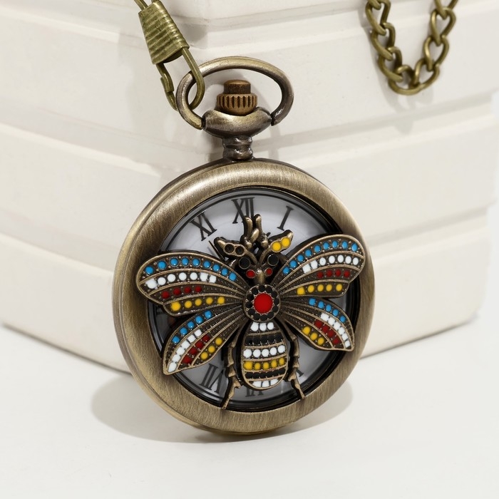 Часы карманные "Оса", кварцевые, d циферблата-4.7 см, цепочка l-38 см