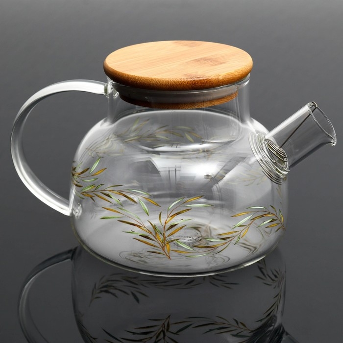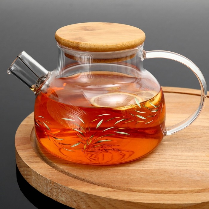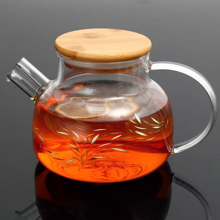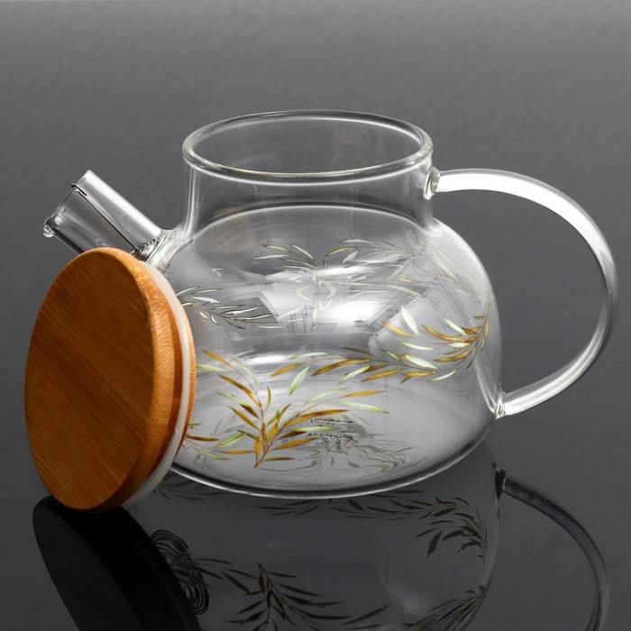 Чайник стеклянный заварочный с бамбуковой крышкой «Тропики», 800 мл