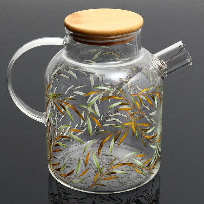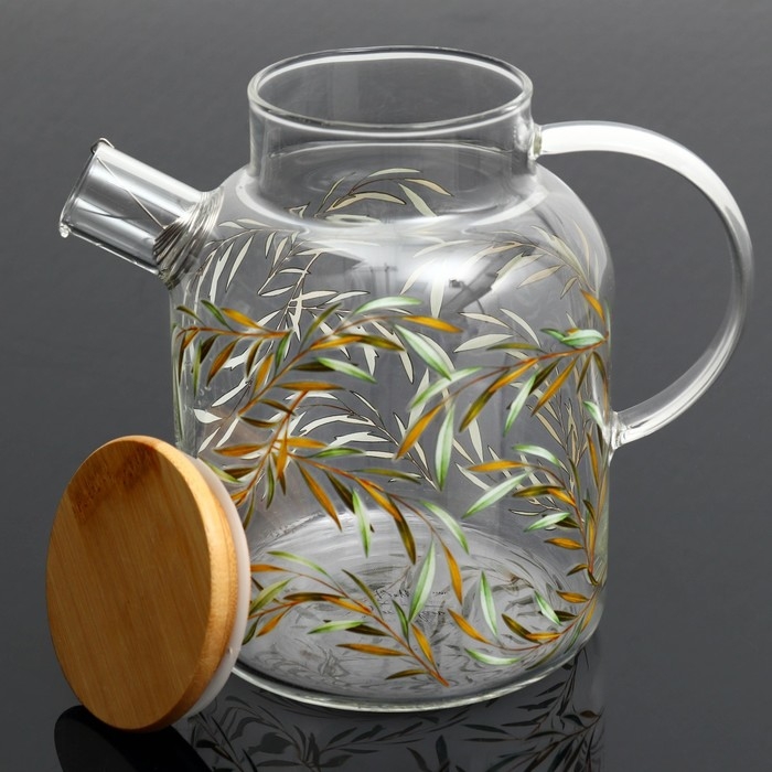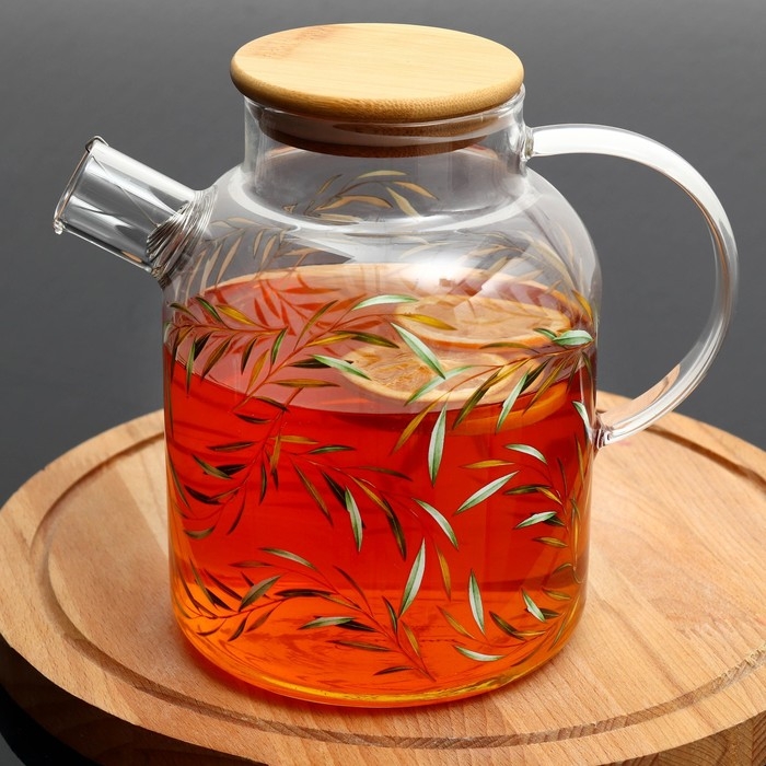 Чайник стеклянный заварочный с бамбуковой крышкой «Тропики», 1700 мл