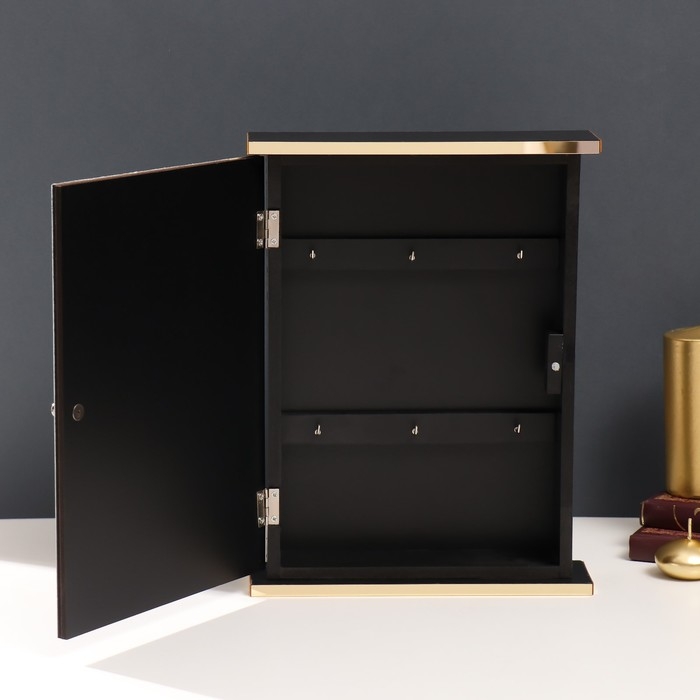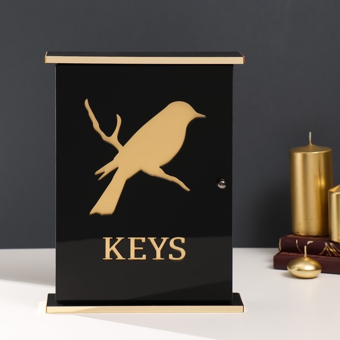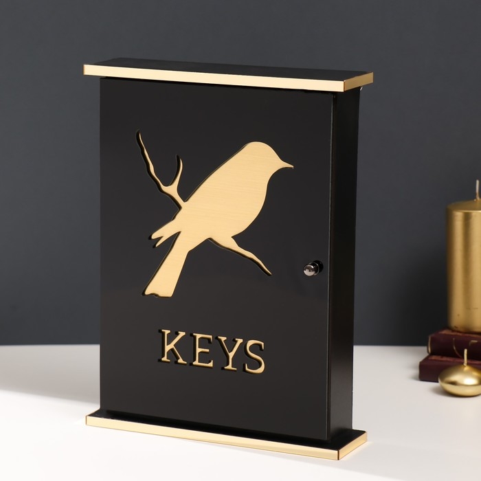 Ключница дерево "Птица на ветке" чёрная, зеркальная 6х22,3х29,5 см