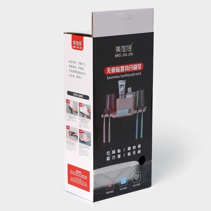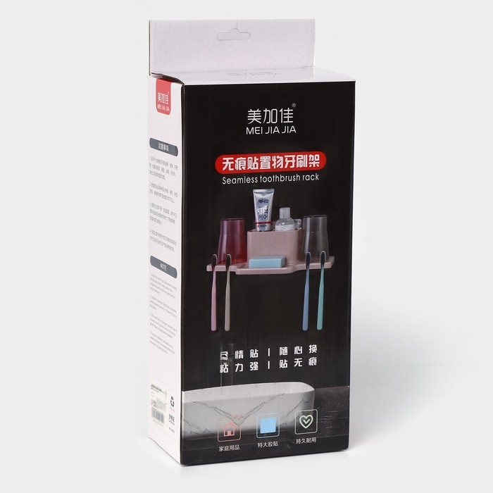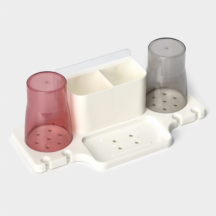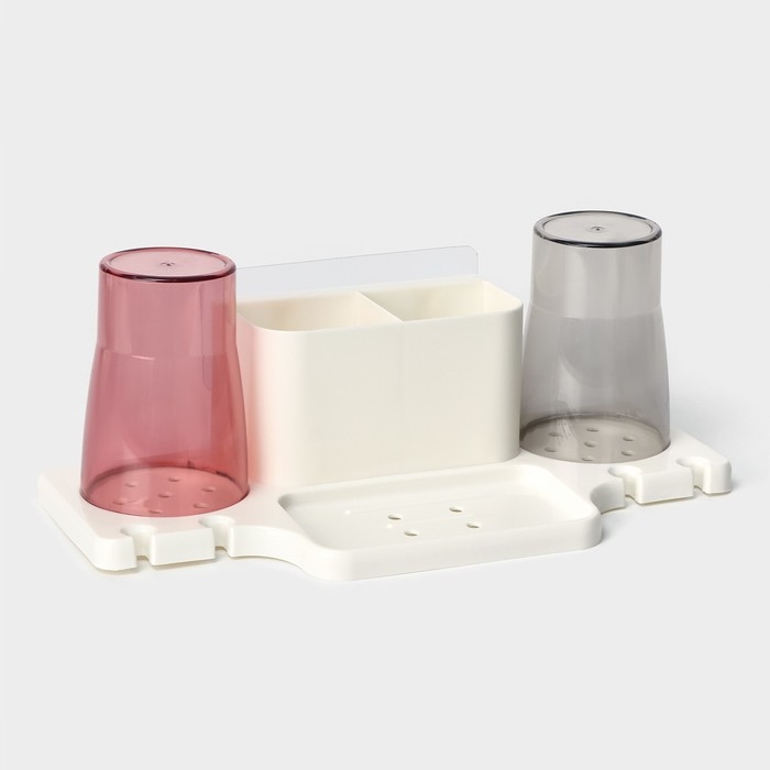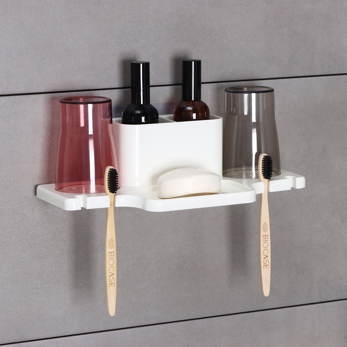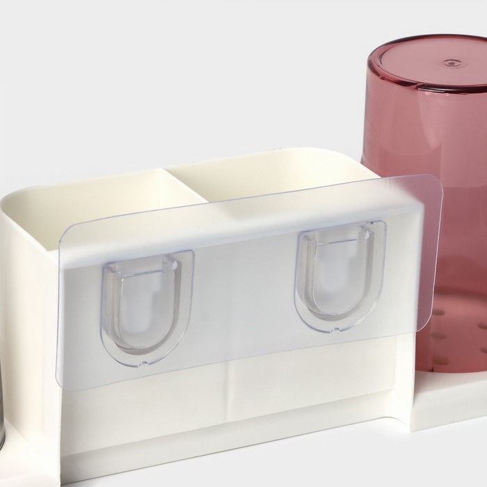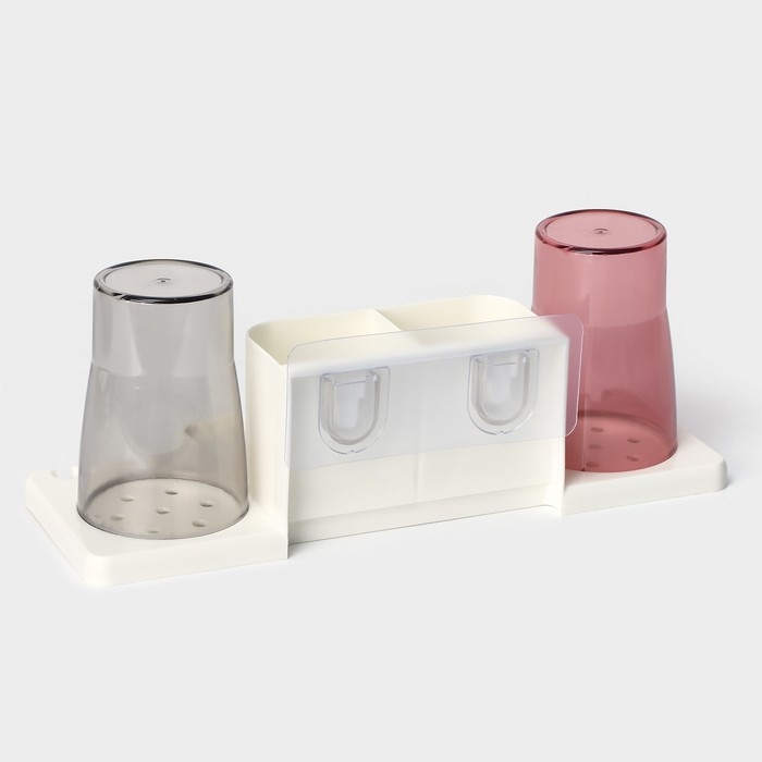 Держатель для зубных щеток настенный, с 2 стаканами на липучках, 31×9×14 см, цвет белый