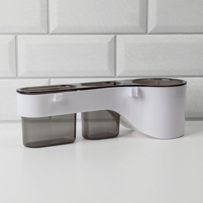 Органайзер для хранения, навесной, 3 секции, с клеевой основой, 28,7 × 10,5 × 8,5 см, цвет коричневый/белый