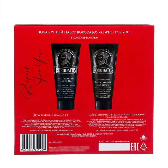 Подарочный набор Borodatos - это набор средств для ухода за волосами и кожей лица, который поможет улучшить их общее состояние.