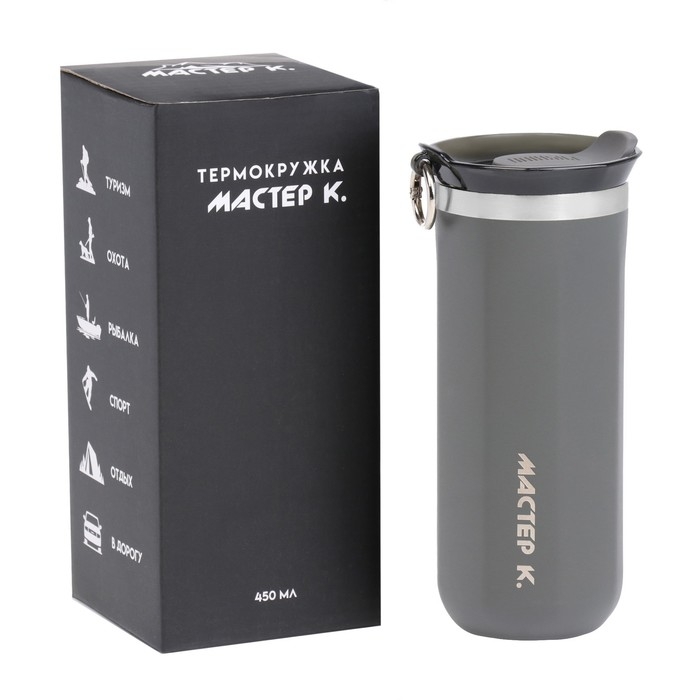 Термокружка, 450 мл, Sсhool "Мастер К", сохраняет тепло до 6 ч, серая
