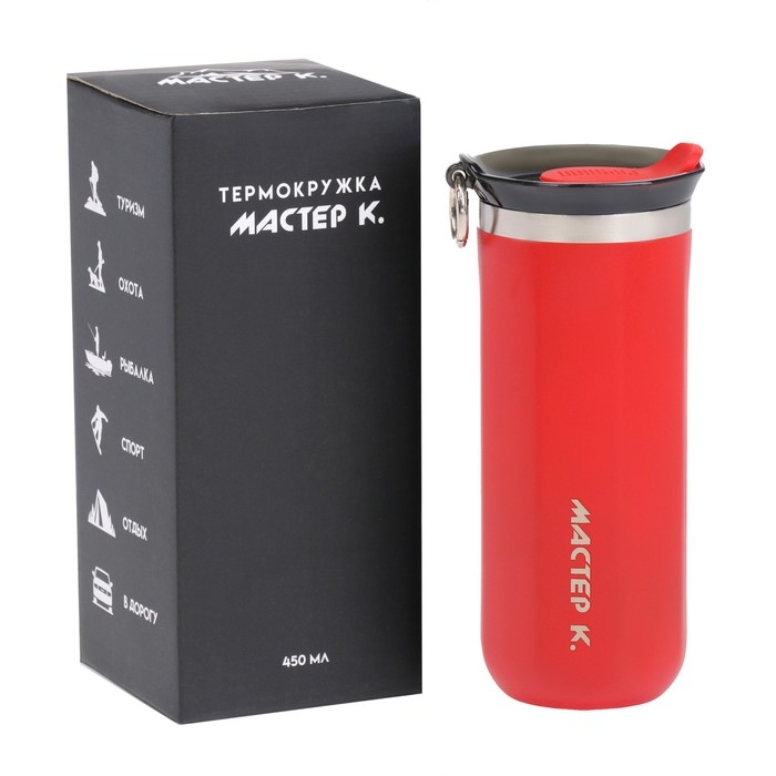 Термокружка, 450 мл, Sсhool "Мастер К", сохраняет тепло до 6 ч, красная