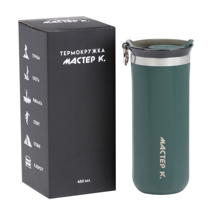 Термокружка, 450 мл, Sсhool "Мастер К", сохраняет тепло до 6 ч, зеленая