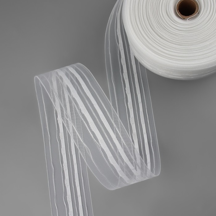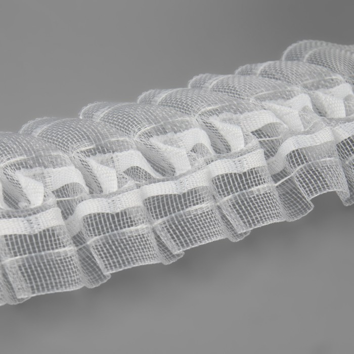 Шторная лента классическая, органза, 6 см, 50 ± 1 м, цвет прозрачный/белый