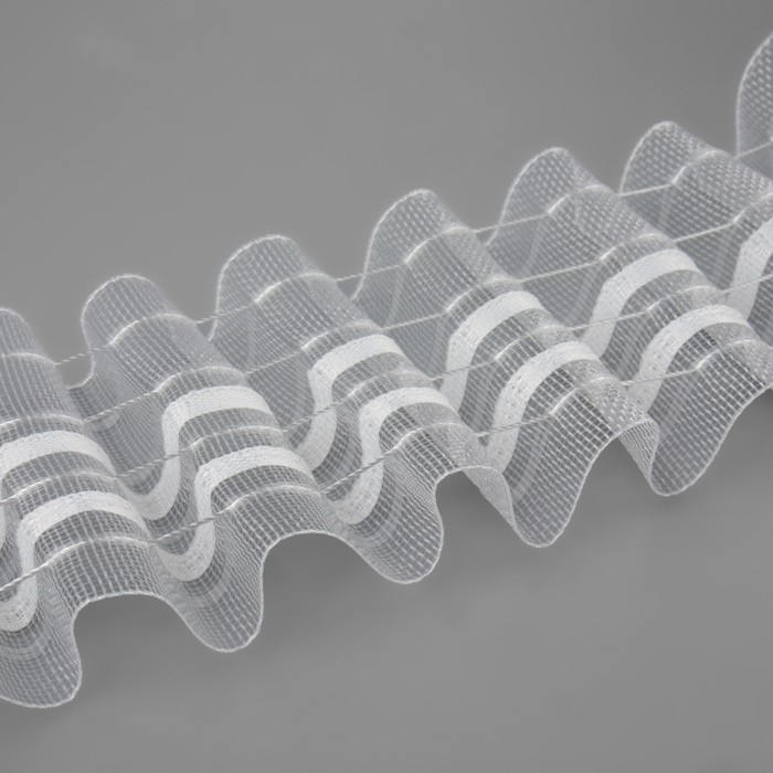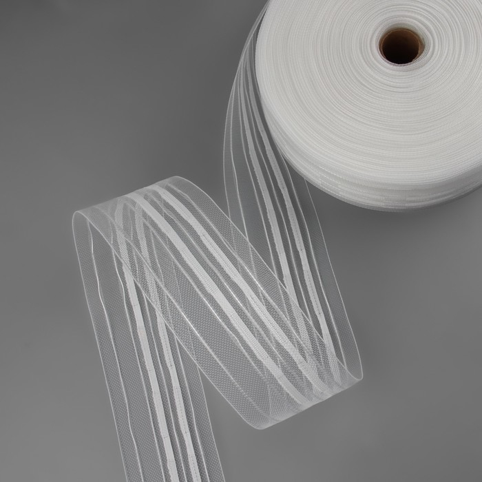 Шторная лента фиксированная сборка, органза, 6 см, 50 ± 1 м, цвет прозрачный/белый