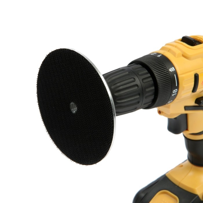 Насадка с липучкой для дрели и УШМ ТУНДРА, толстый алюминиевый диск, с адаптером, 100 мм