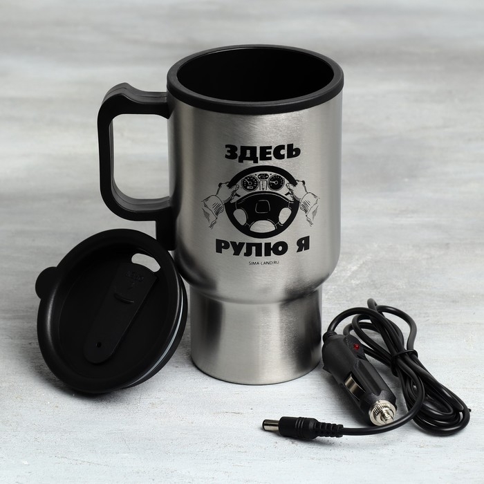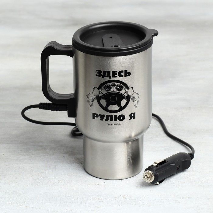 Термокружка, 450 мл, Автомобильная «Здесь рулю я», сохраняет тепло 3 ч, с подогревом от прикуривателя