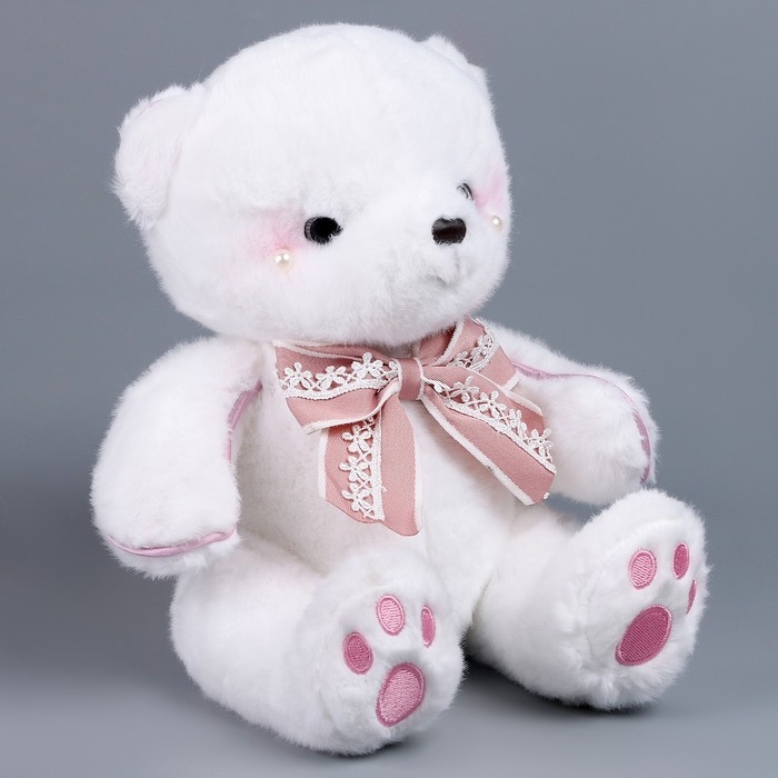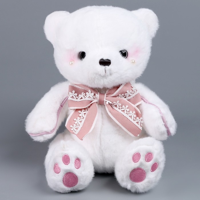 Мягкая игрушка «Мишка с жемчугом», с бантиком, 25 см, цвет розовый