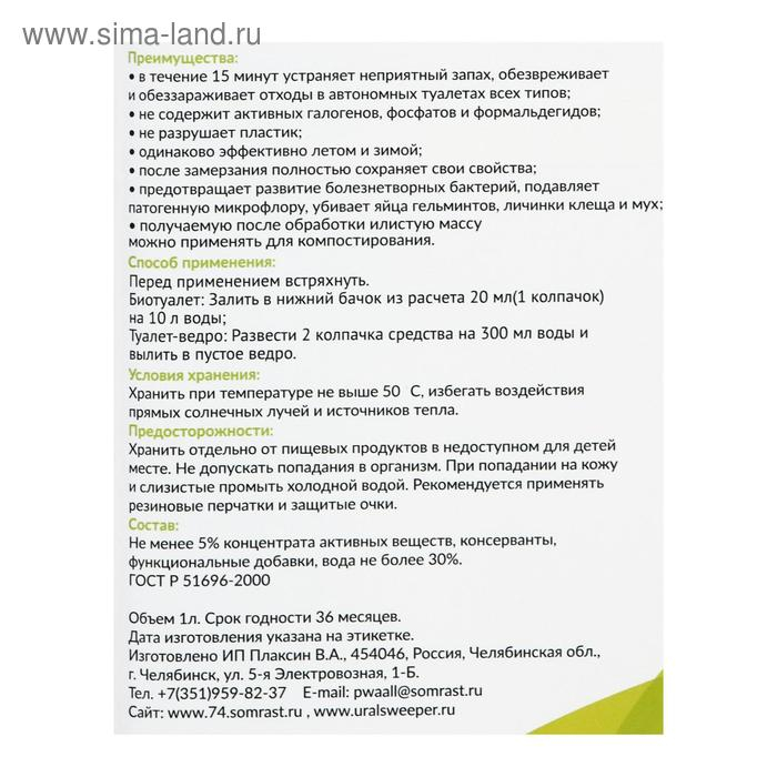 Средство для туалетов "Всесезонка" Био и Ведро, 1 л