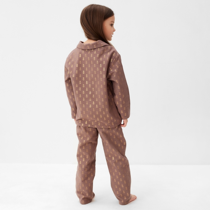 Пижама детская из фланели (рубашка, брюки) KAFTAN "Ананасы", рост 98-104, кофейный