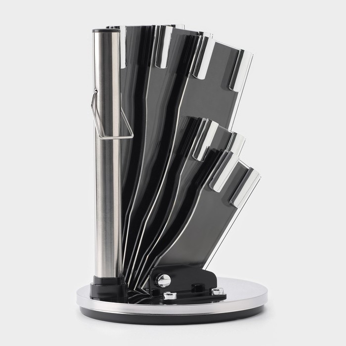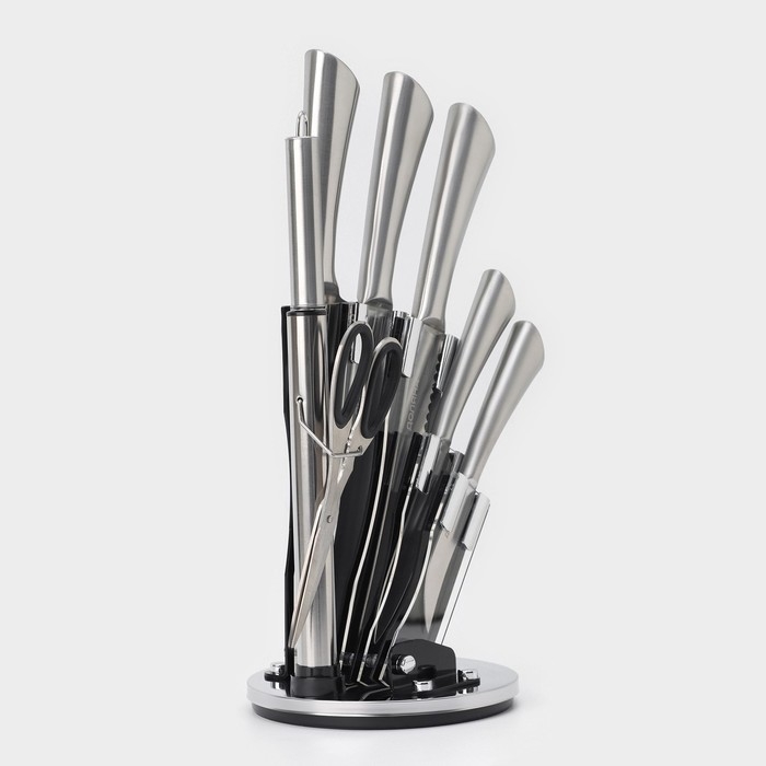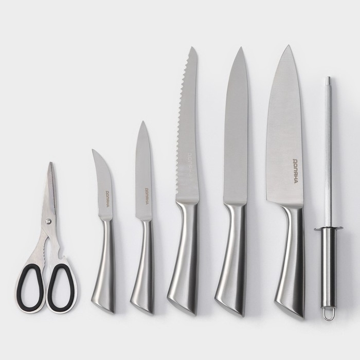 Набор ножей кухонных на подставке Ardone, 7 предметов: 5 ножей, мусат и ножницы, цвет хромированный