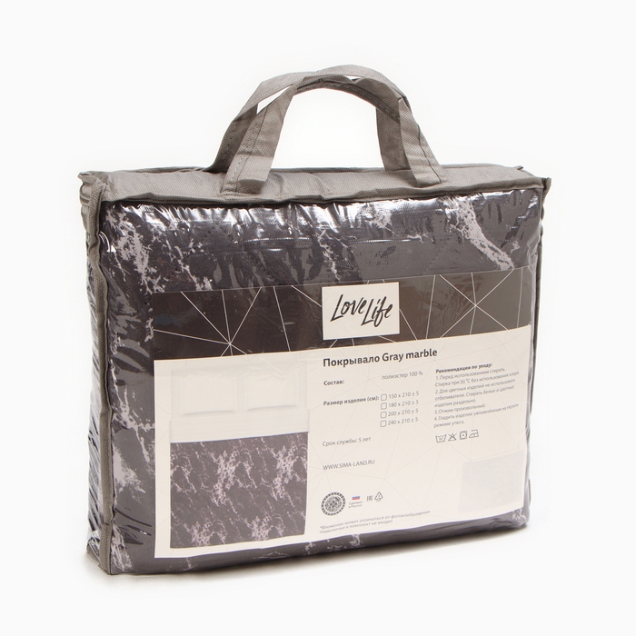 Покрывало LoveLife евро макси Gray marble, 240*210±5см, микрофайбер, 100% п/э