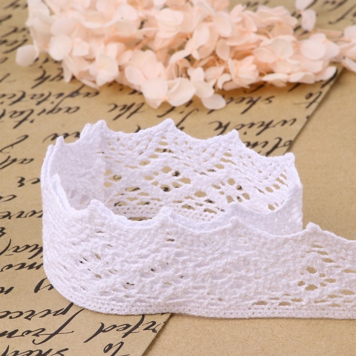 Кружево гипюровое, 45 мм × 9 ± 0,5 м, цвет белый