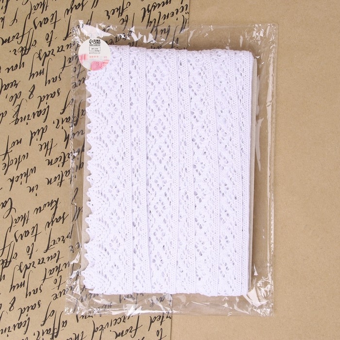 Кружево шитьё, 65 мм × 13 ± 1 м, цвет белый