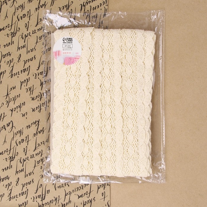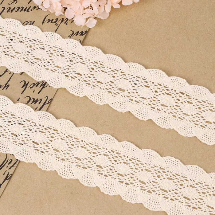 Кружево вязаное, 50 мм × 10 ± 1 м, цвет бежевый