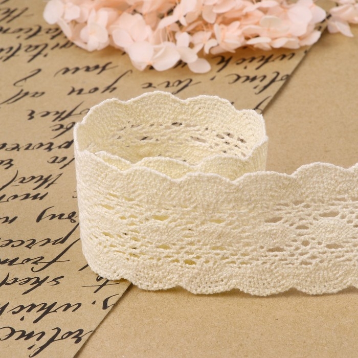 Кружево гипюровое, 45 мм × 9 ± 0,5 м, цвет белый