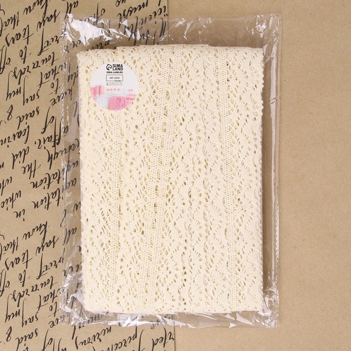 Кружево вязаное, 55 мм × 10 ± 1 м, цвет бежевый
