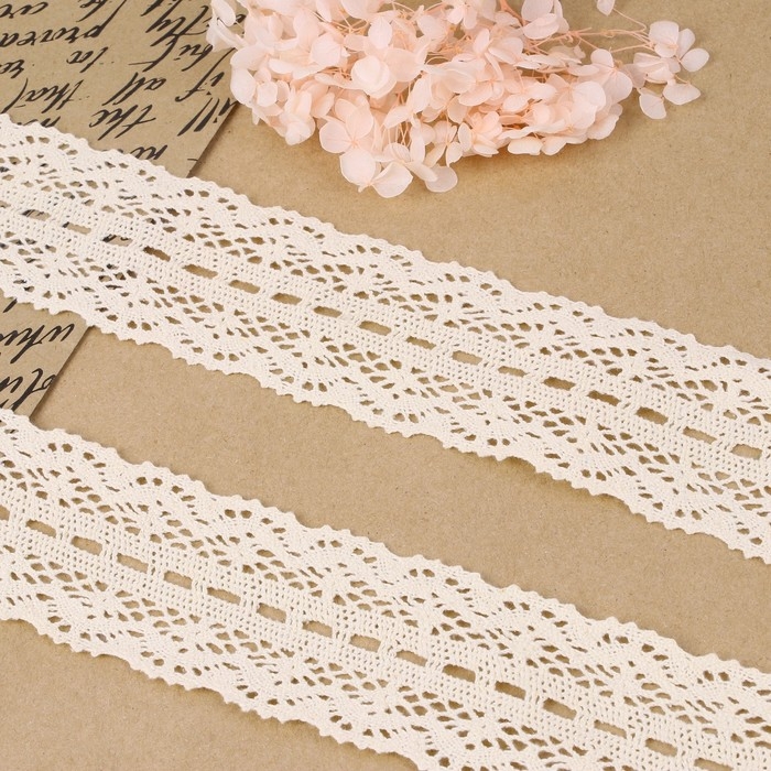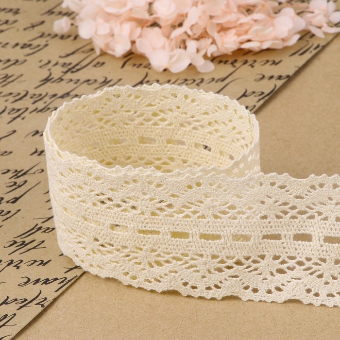 Кружево гипюровое, 45 мм × 9 ± 0,5 м, цвет белый
