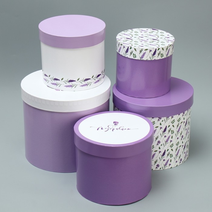 Набор шляпных коробок 5 в 1, упаковка подарочная, «Лаванда», 13 х 14 ‒ 19.5 х 22 см