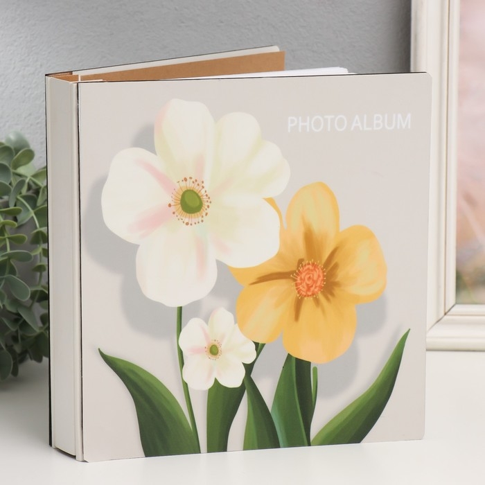 Фотоальбом на 100 фото 10х15 см "Крупные цветы с зелеными листьями" 22х4х23 см