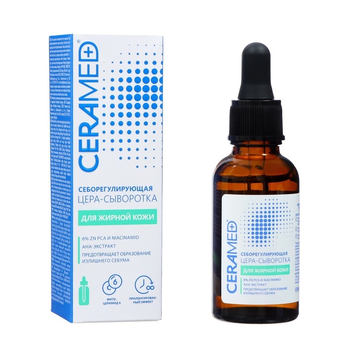 - Цера-сыворотка для лица Себорегулирующая с ниацинамидом и цинком, 30 мл. Сыворотка стимулирует заживление повреждений и восстановление кожи. Способствует устранению воспаления и покраснения на лице. Снимает чувствительность дермы, дарит чувство комфорта на протяжении всего дня.