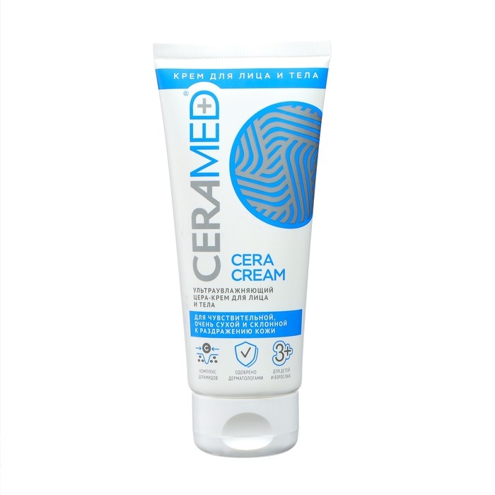 - Ультраувлажняющий Цера-Крем для лица и тела серии Церамед, 100 мл. Образ жизни, внешние факторы, состояние здоровья влияют на дегидратацию кожи. Увлажненная кожа обеспечивает защитную (барьерную) функцию организма. Поэтому так важно поддерживать необходимый уровень увлажнения. Недостаток влаги становится причиной сухости, дискомфорта и потери эластичности.