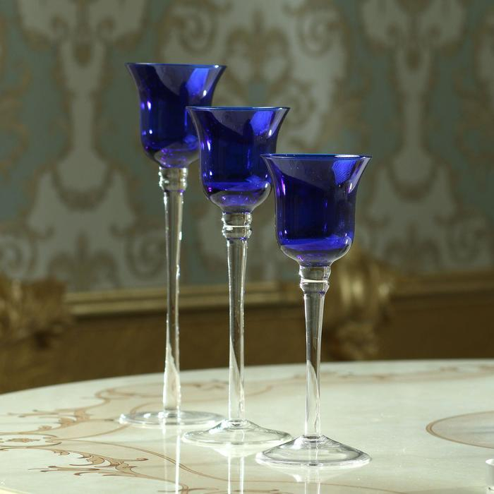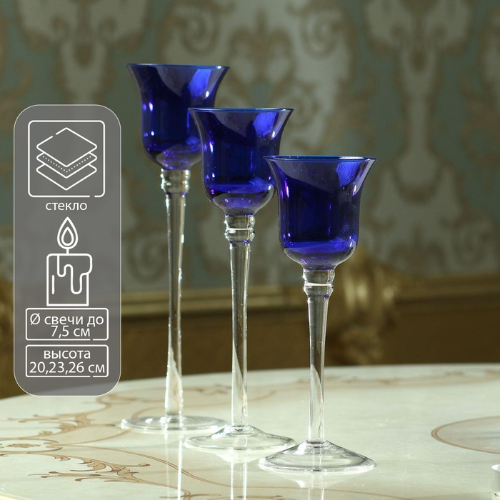 Подсвечник стекло набор 3 шт "Бархатная ночь" высота 26см, 23 см, 20 см