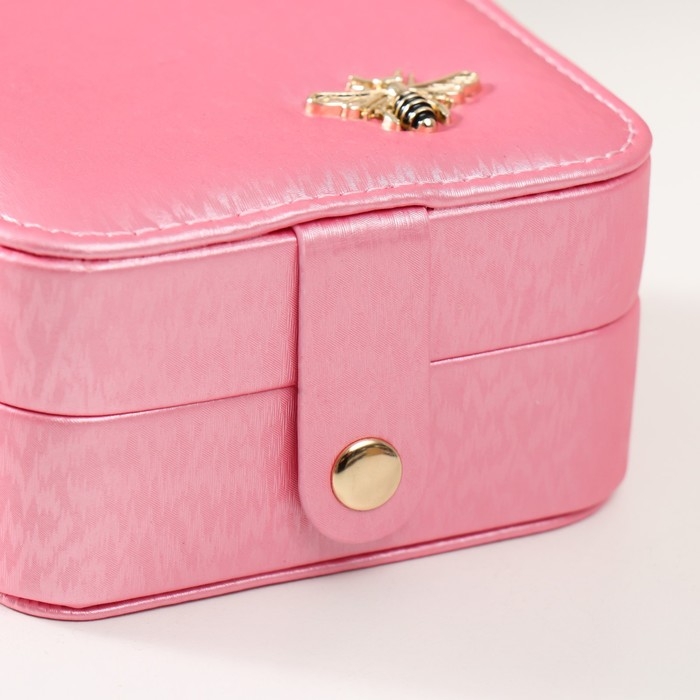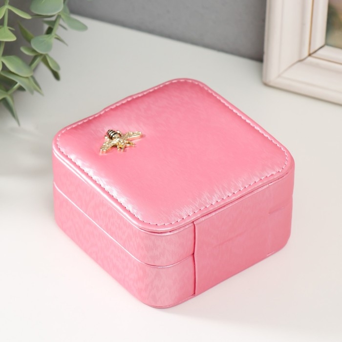 Шкатулка текстиль для украшений "Перелив с украшением" розовая 10х10х6 см