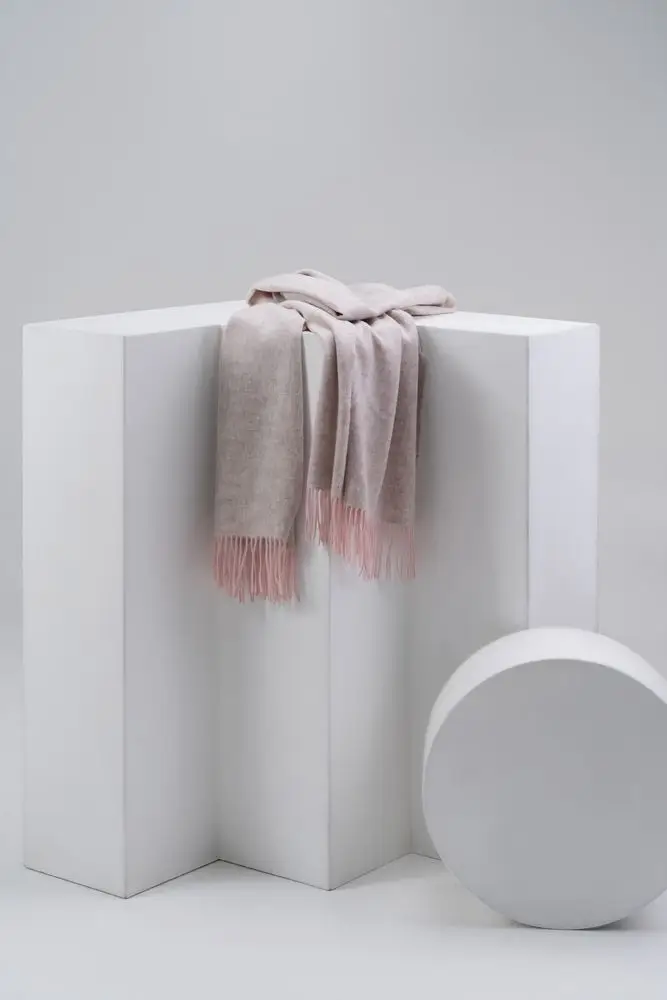 Широкий палантин с едва заметным узором плетения открывает простор фантазии — его можно использовать как шарф, головной убор или декоративный элемент для верхней одежды.